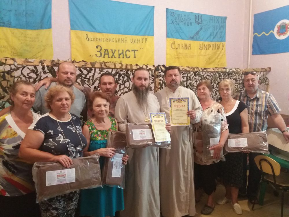 Військові священики Київської та Бориспільської єпархій Української Православної Церкви спільно з волонтерським центром «Захист» міста Бердянська забезпечили п’ять підрозділів ЗСУ кровоспинним порошком, необхідним для збереження життя пораненим.