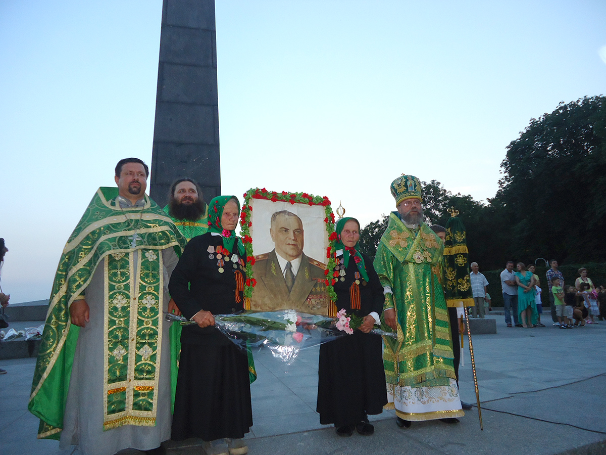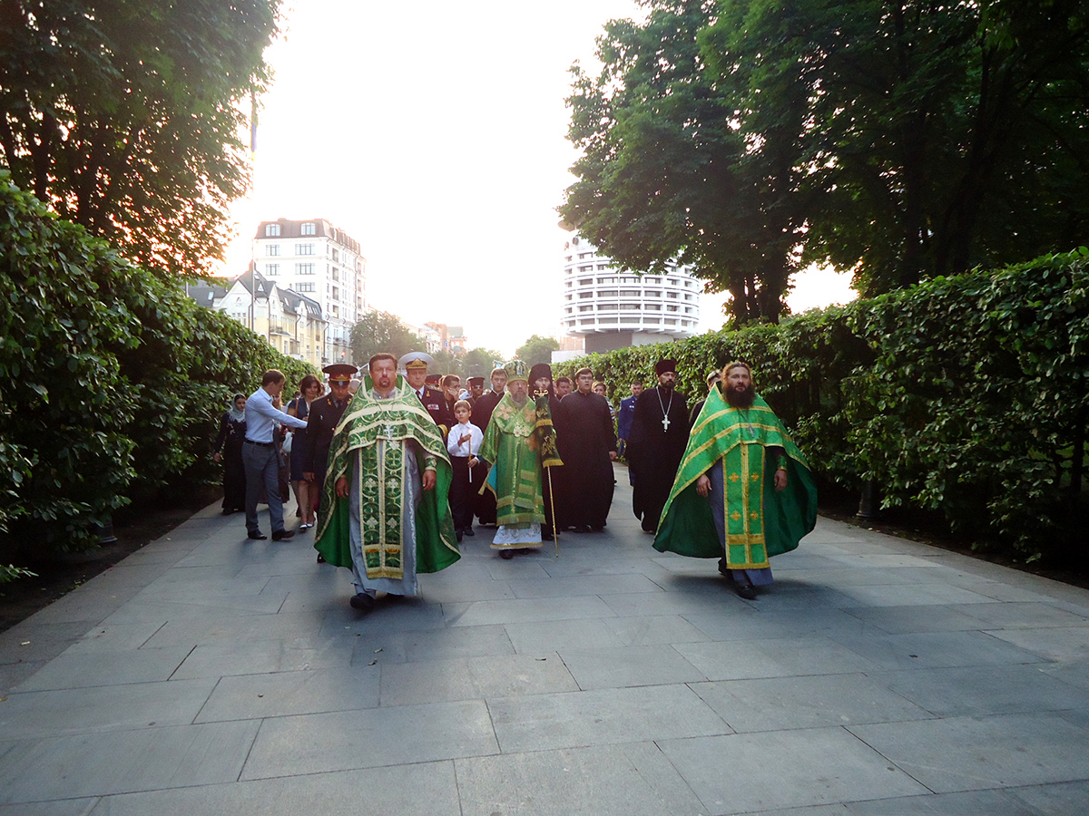 На фото: начало крестного хода от Киево-Печерской Лавры к памятнику Славы, молитва о погибших в Отечественной войне.