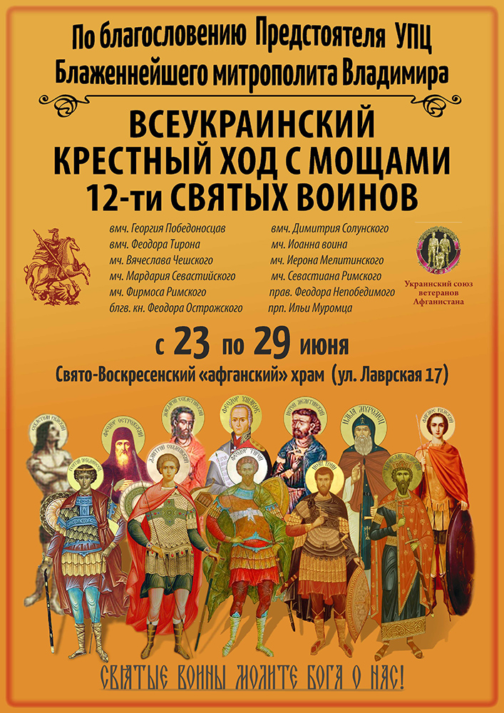 С 22.06.2013 по 22.12.2013 прошел всеукраинский крестный ход сковчегом с частичками мощей 12 святых воинов.