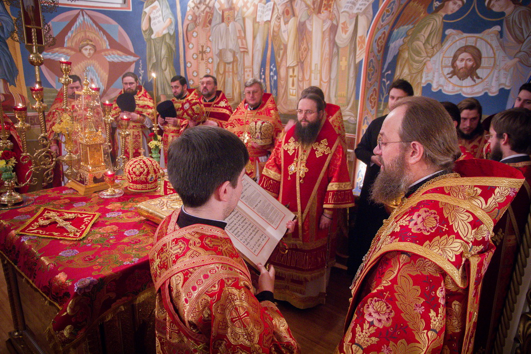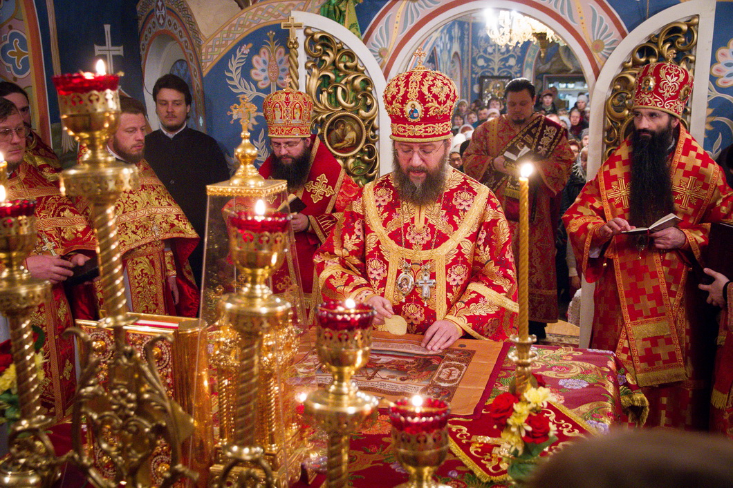 По благословению Блаженнейшего митрополита Онуфрия богослужение возглавил управляющий делами УПЦ митрополит Борипольский и Броварской Антоний. Ему сослужили викарии Киевской митрополии епископ Ирпенский Климент и епископ Бородянский Варсонофий с сонмом киевского духовенства.