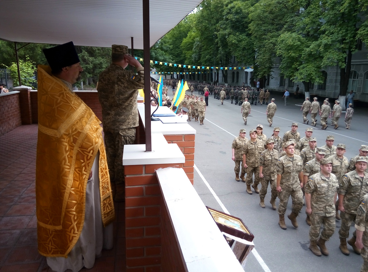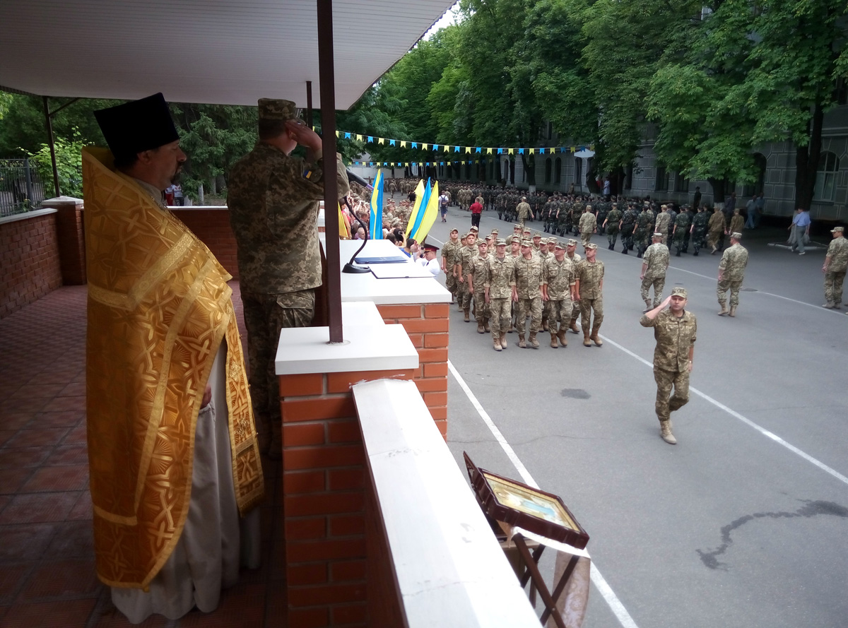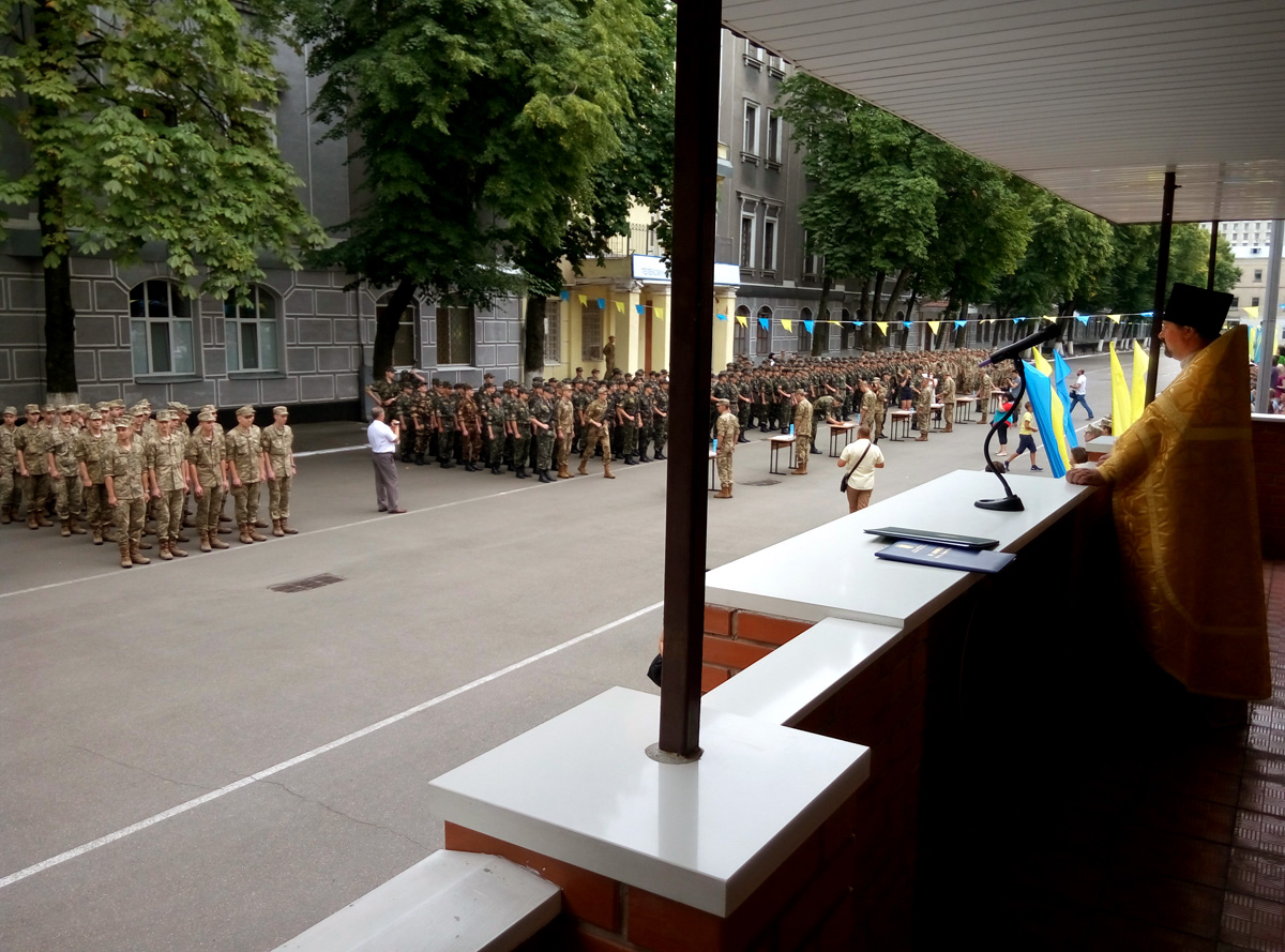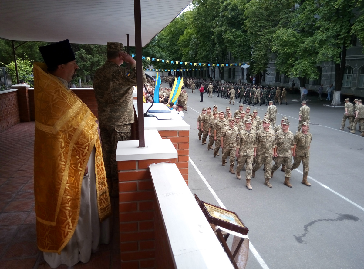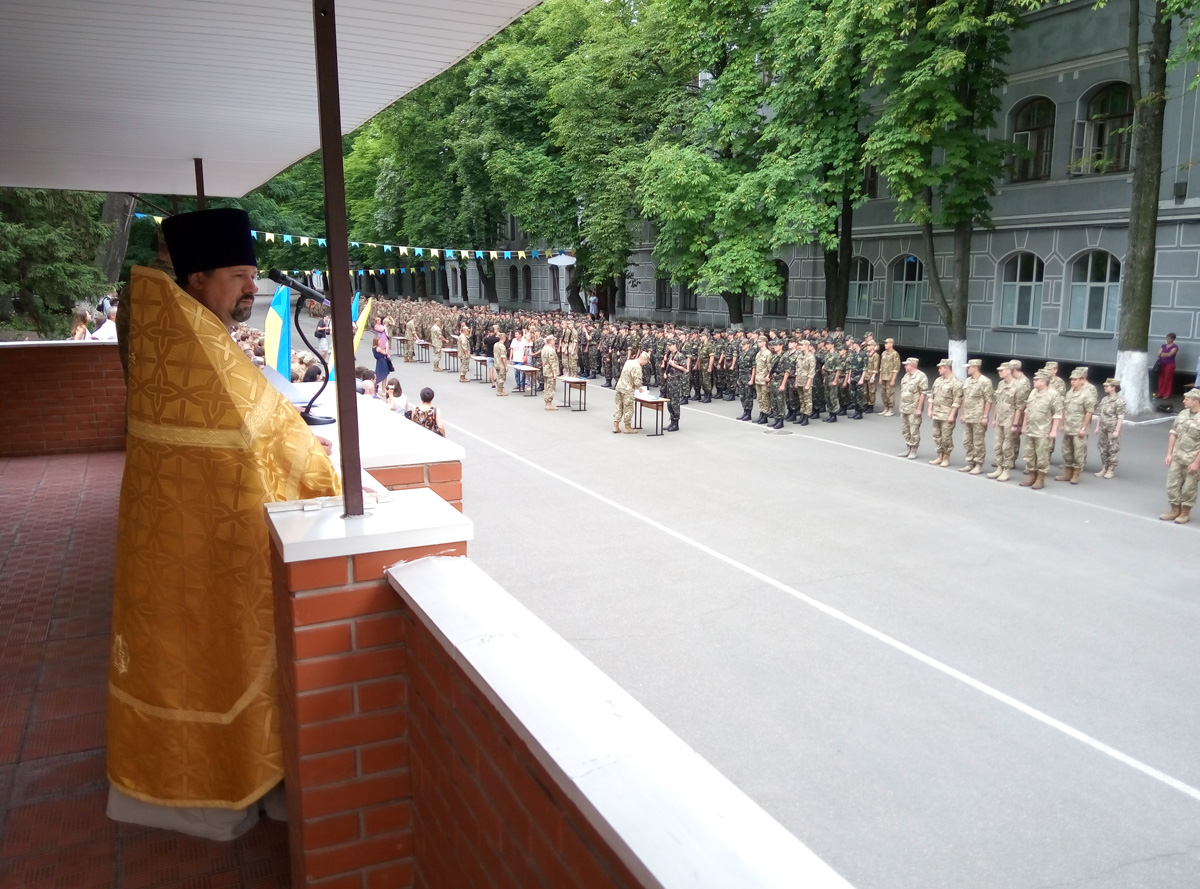 По военной традиции, после принятия присяги, все присутствовавшие помолились и получили благословение на добрую службу от представителя Украинской Православной Церкви протоиерея Вячеслава (Яковенко) иконой Покрова Божией Матери и ковчегом с частичками мощей святых воинов.