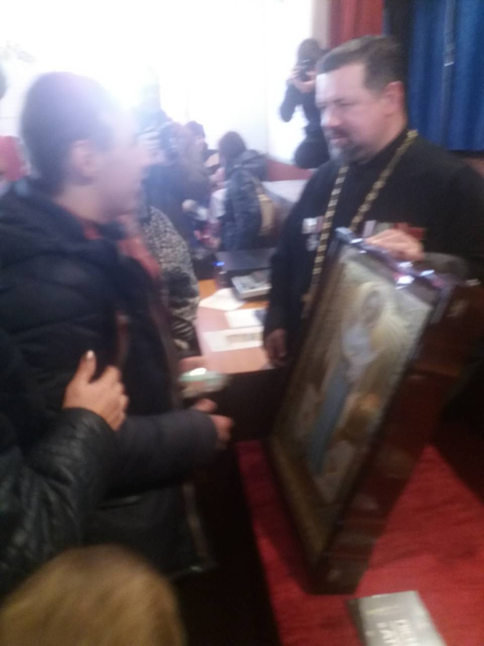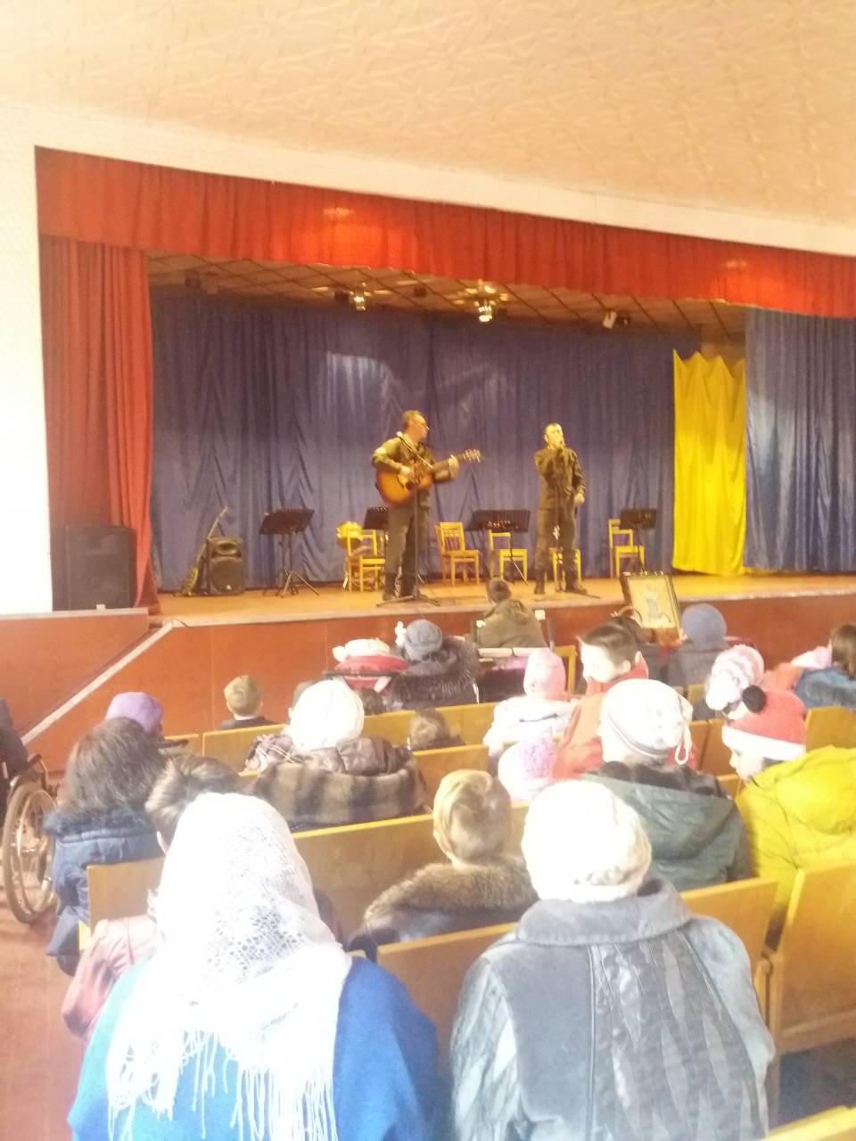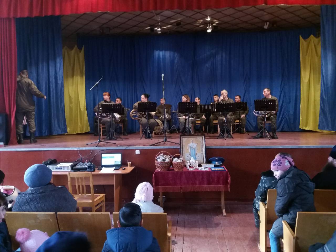 24 ноября в воинской части Национальной Гвардии Украины, расположенной в Александрии (Кировоградская обл.) состоялся праздник, в котором приняли участие не только военнослужащие, но и дети-инвалиды. Сначала вместе с правящим архиереем епархии епископом Александрийский и Светлогорским Боголепом все помолились и возложили цветы у памятника погибшим защитникам Отечества, которые служили в части, а затем состоялась экскурсия во время которой дети побывали в вертолете. После вкусного настоящего солдатского обеда детей ждал концерт с участием, приглашенных владыкой Боголепом, почетных гостей из Киева: певицы и волонтера, лауреата Свято-Георгиевского международного фестиваля культуры и творчества Дарины Коломыцкой, члена оргкомитета Свято-Георгиевского фестиваля, режисера и ведущей праздника Татьяны Коломыцкой и духовника Фестиваля прот. Вячеслава Яковенко. Все зрители и участники мероприятия смогли получить не только душевную радость, но и духовную пользу: о. Вячеслав привез с собой икону Покрова Пресвятой Богородицы с частицей Ее омофора, с которой, по благословению Предстоятеля УПЦ Блаженнейшего митрополита Онуфрия, многократно совершались миротворческие духовные миссии по зоне боевых действий. В конце праздника, по предложению о. Вячеслава, все детки решили стать защитниками Отечества - теперь они каждый день будут молиться о мире в Украине. После того как Преосвященнейший владыка Боголеп благословил всех иконой Богородицы все смогли помолиться и приложиться к святому образу Покрова.