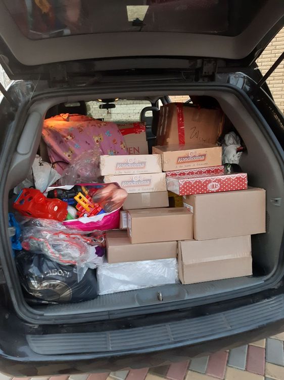 Так как в Кременной мы выгрузили половину груза мы смогли, благодаря вам, в Северодонецке докупить еще сладостей деткам в Счастье