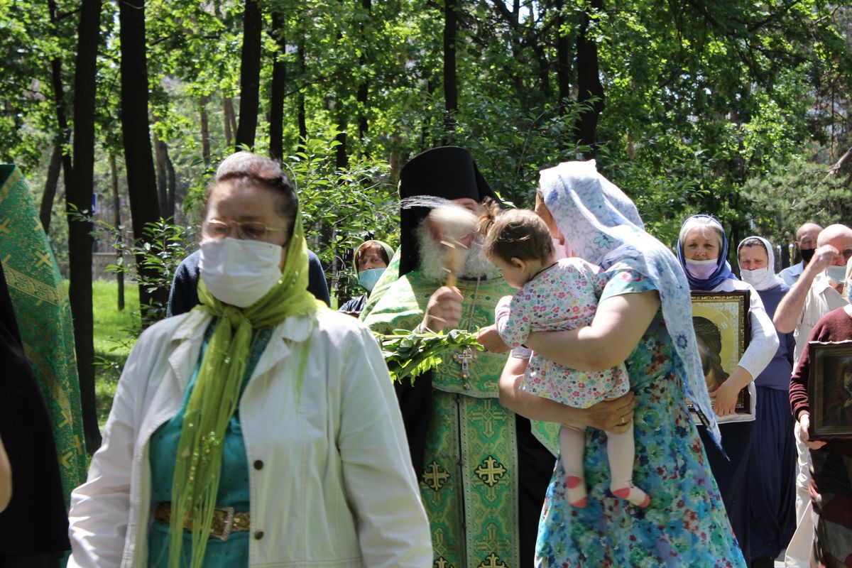 Празднование Дня Святой Троицы в храме Всех святых воинов 7 июня 2020 года. Послабление карантина собрало множество прихожан. После длительного перерыва, наконец, люди смогли от души помолится, причаститья Святых Христовых Таин, принять участие в крестном ходе. Верим, что каждый искренне верующий получил благодать Святаго Духа.