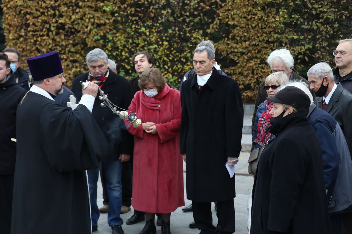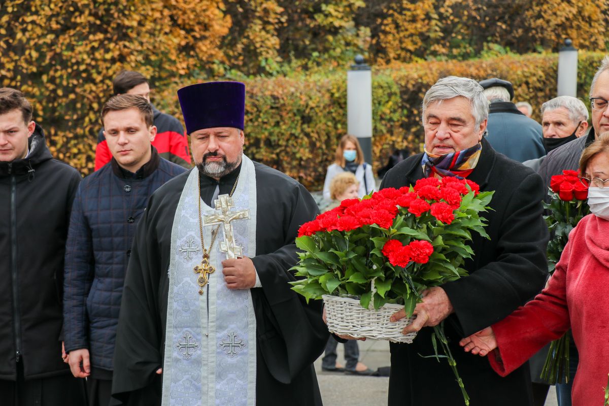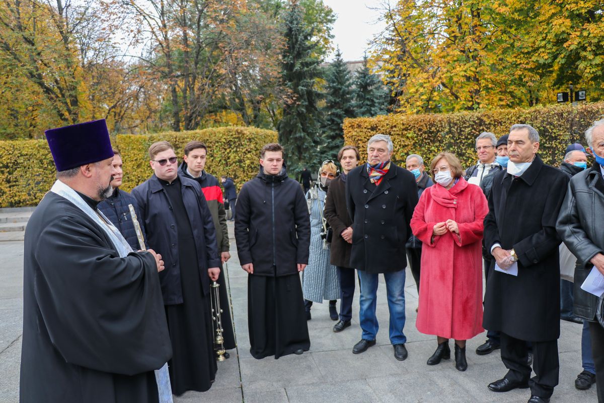 После богослужения, в знак уважения к павшим освободителям Киева, присутствующие возложили цветы к Могиле Неизвестного солдата.