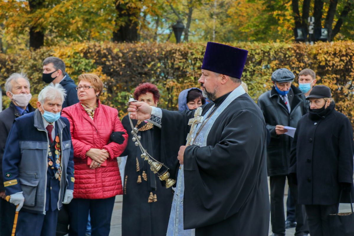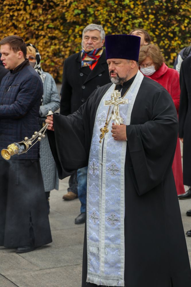 Литию по всем погибшим и умершим защитникам Отечества у Вечного огня на Аллее павших героев в столичном Парке Вечной Славы совершил заместитель председателя Синодального отдела УПЦ по взаимодействию с вооруженными силами и другими воинскими формированиями Украины протоиерей Вячеслав Яковенко.