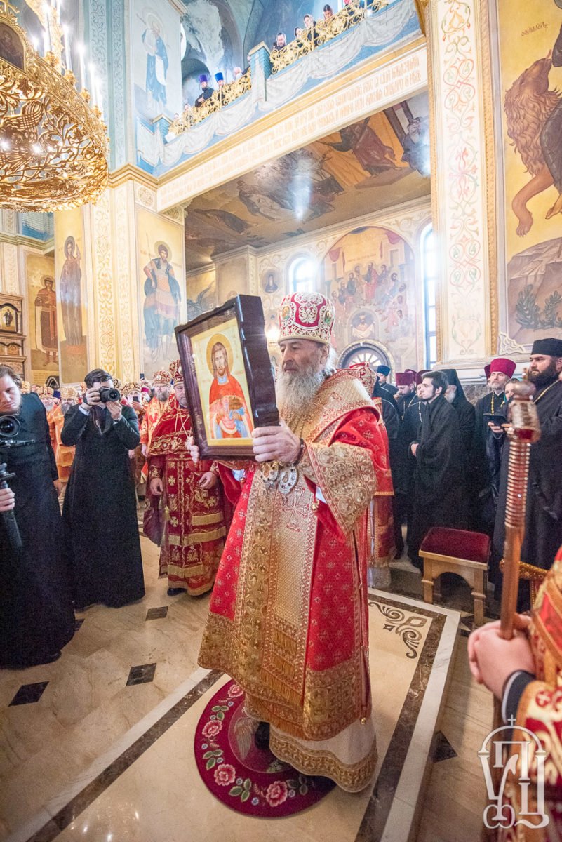 Після малого входу відбувся чин прославлення священномученика Михаїла Под’єльського, пресвітера Зазимського. За традицією спочатку звершили останню заупокійну літію. Потім секретар Священного Синоду УПЦ митрополит Антоній зачитав рішення Синоду щодо встановлення шанування святого. Митрополит Віссаріон зачитав його житіє. Священномученику Михаїлу проспівали тропар, кондак і величання та вклонилися його іконі.