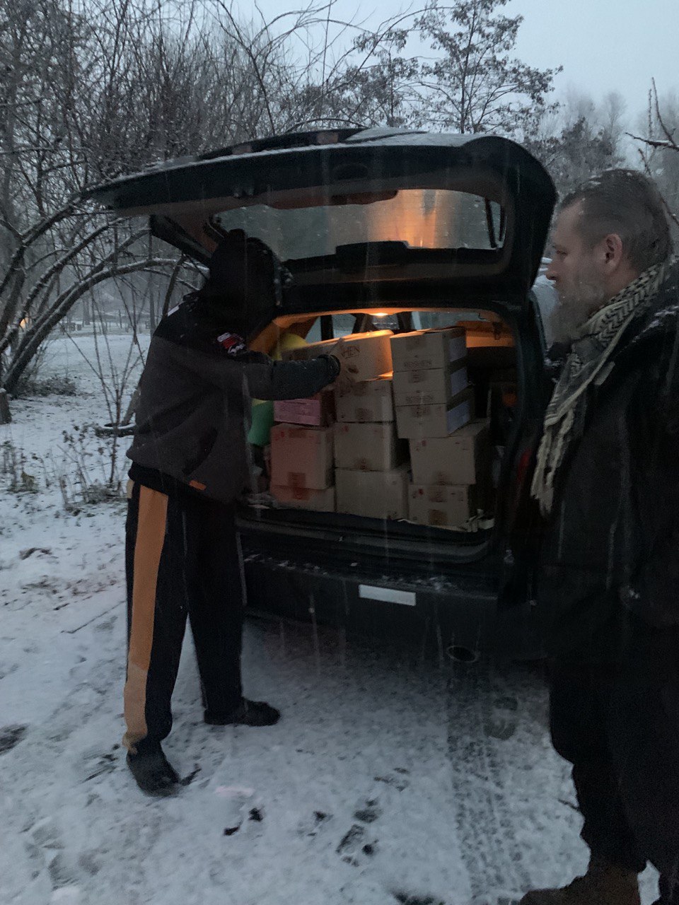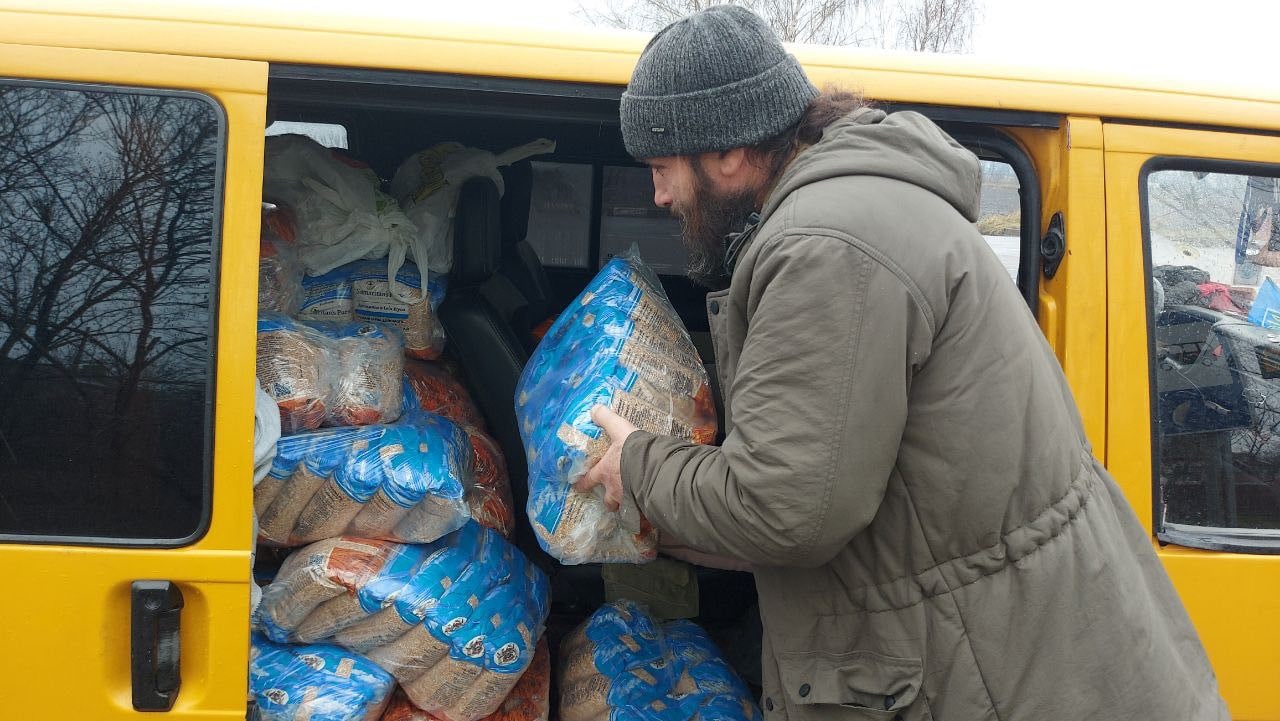 Крупи, борошно, цукор, тушонка, ковбаси, консерви, теплі речі, генератор — загалом тони гуманітарного вантажу на 9 мікроавтобусах!